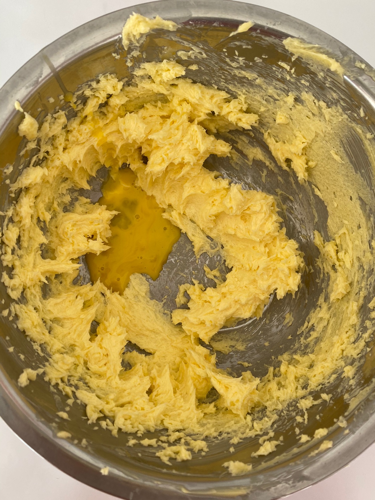 步骤5、分成加入鸡蛋液打发均匀