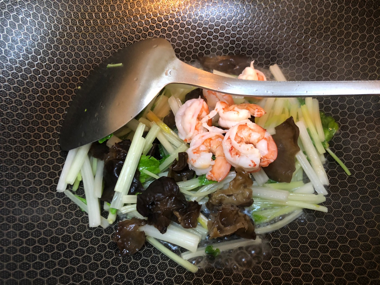 辅料:基围虾几个、油适量、盐2克、葱少许、生抽1勺