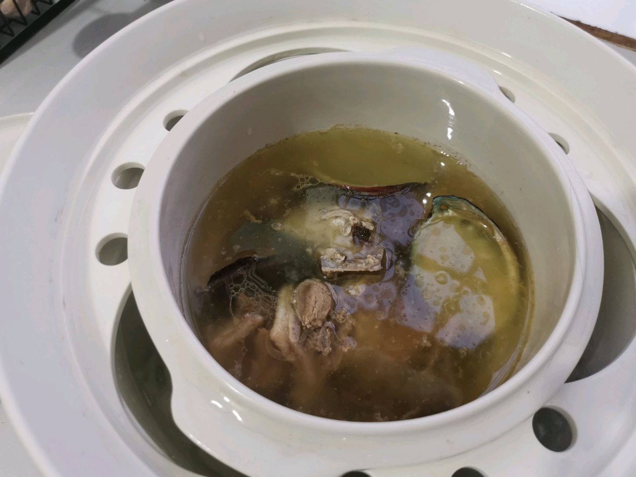 步骤4、大概炖1个钟,再把鲍鱼放进去