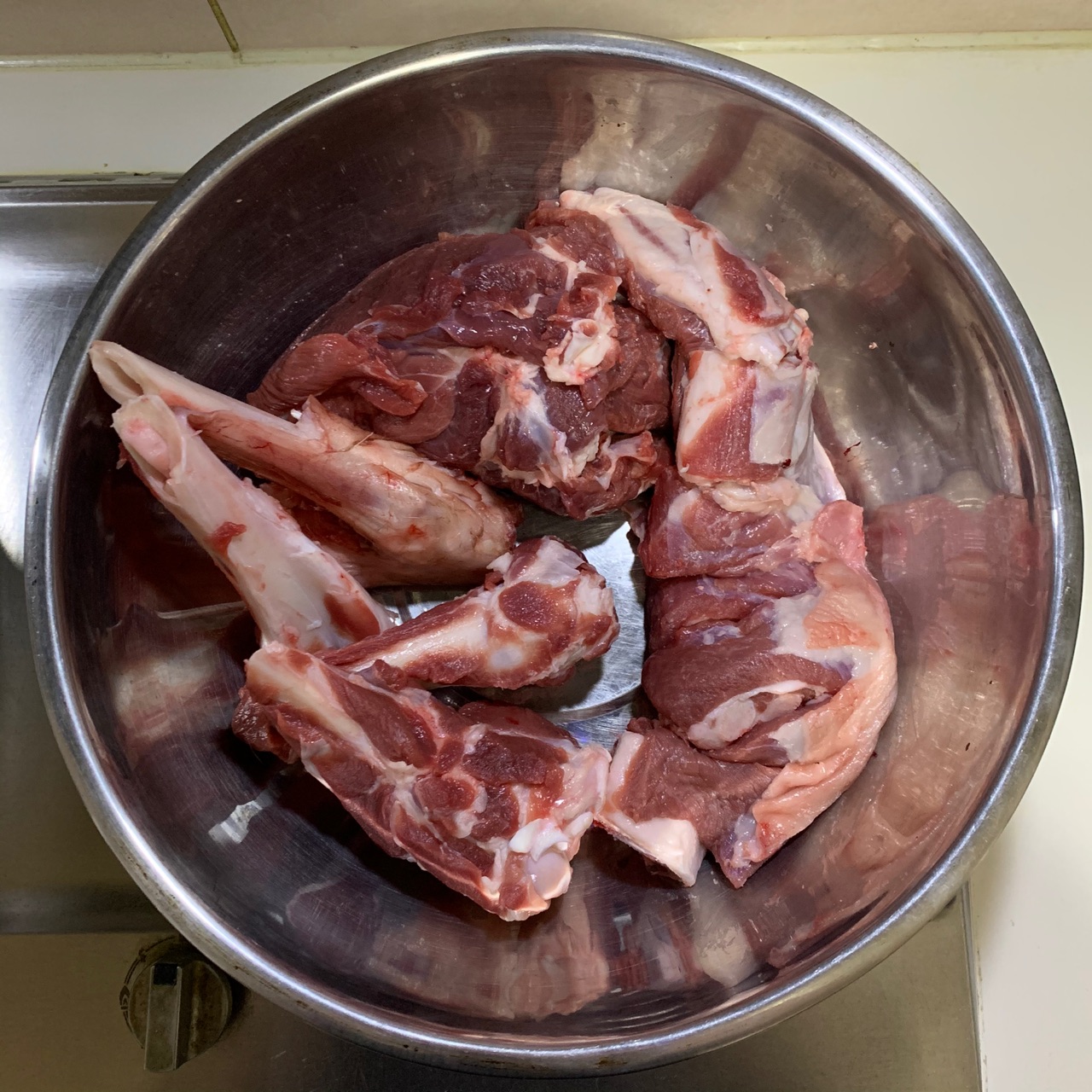 步骤4、羊肉焯水,冷水下锅,葱姜、少量料酒