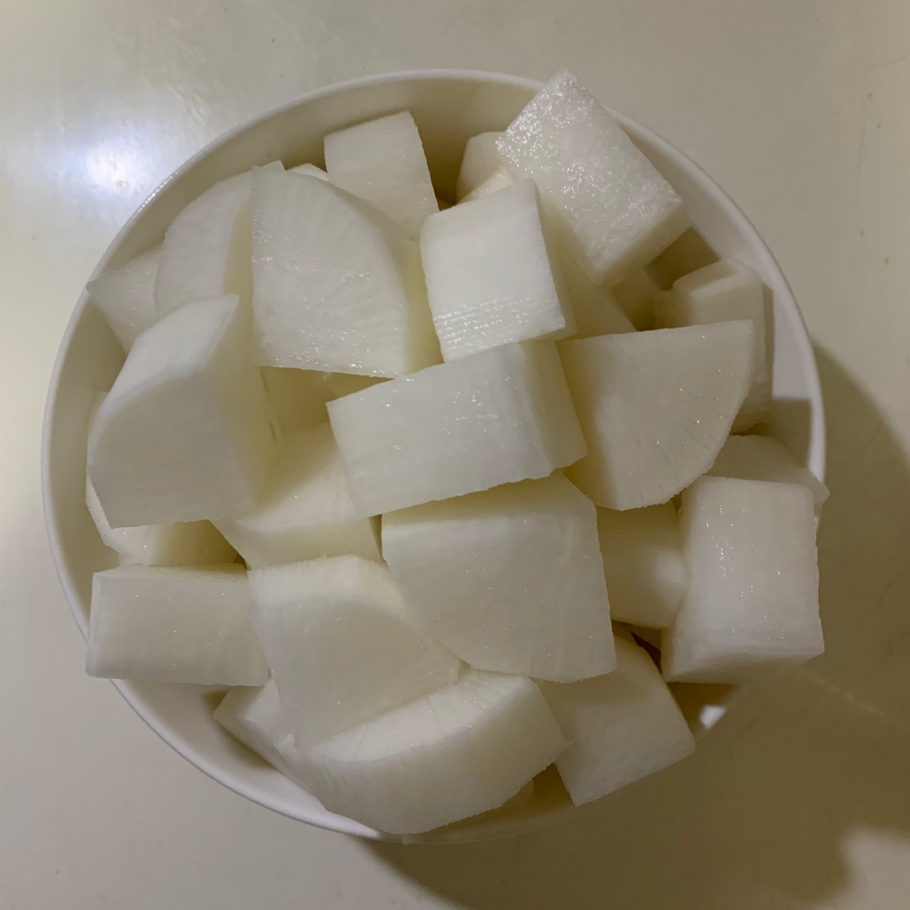 步骤7、放入备料,满满一大砂锅,大火煮开后转小火炖一小时;放入萝卜后再炖半个小时,盐适量