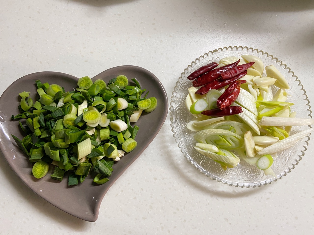 步骤2、5瓣大蒜、半根大葱、一棵蒜苗切好。(没有蒜苗可以放小葱,香菜都可以)