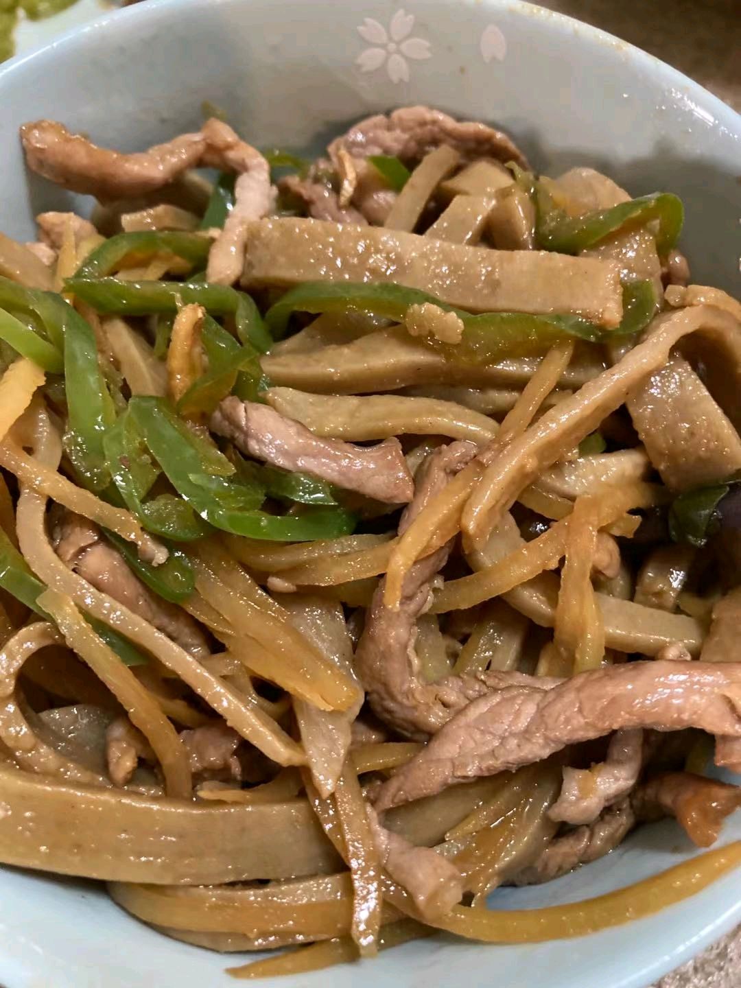 步骤5、里脊肉与青椒切丝,放入炒锅,炒熟后,盛出待用。土豆切丝,用清水泡洗几遍去除淀粉,倒入锅中炒断生,关火,不用起锅。