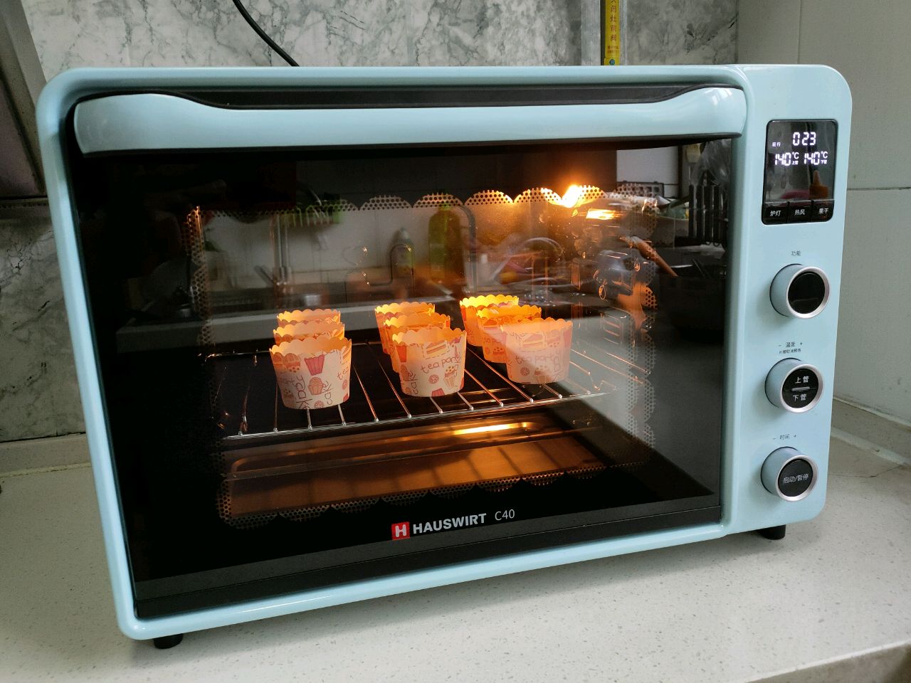 步骤6、海氏C40烤箱预热,放入纸杯,设置140度25分钟,然后转150度十分钟,温度和时间根据自家烤箱情况来定。