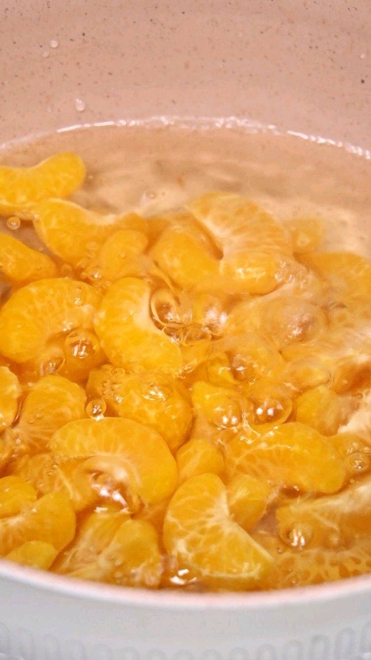 步骤2、锅中煮开水,加入桔子