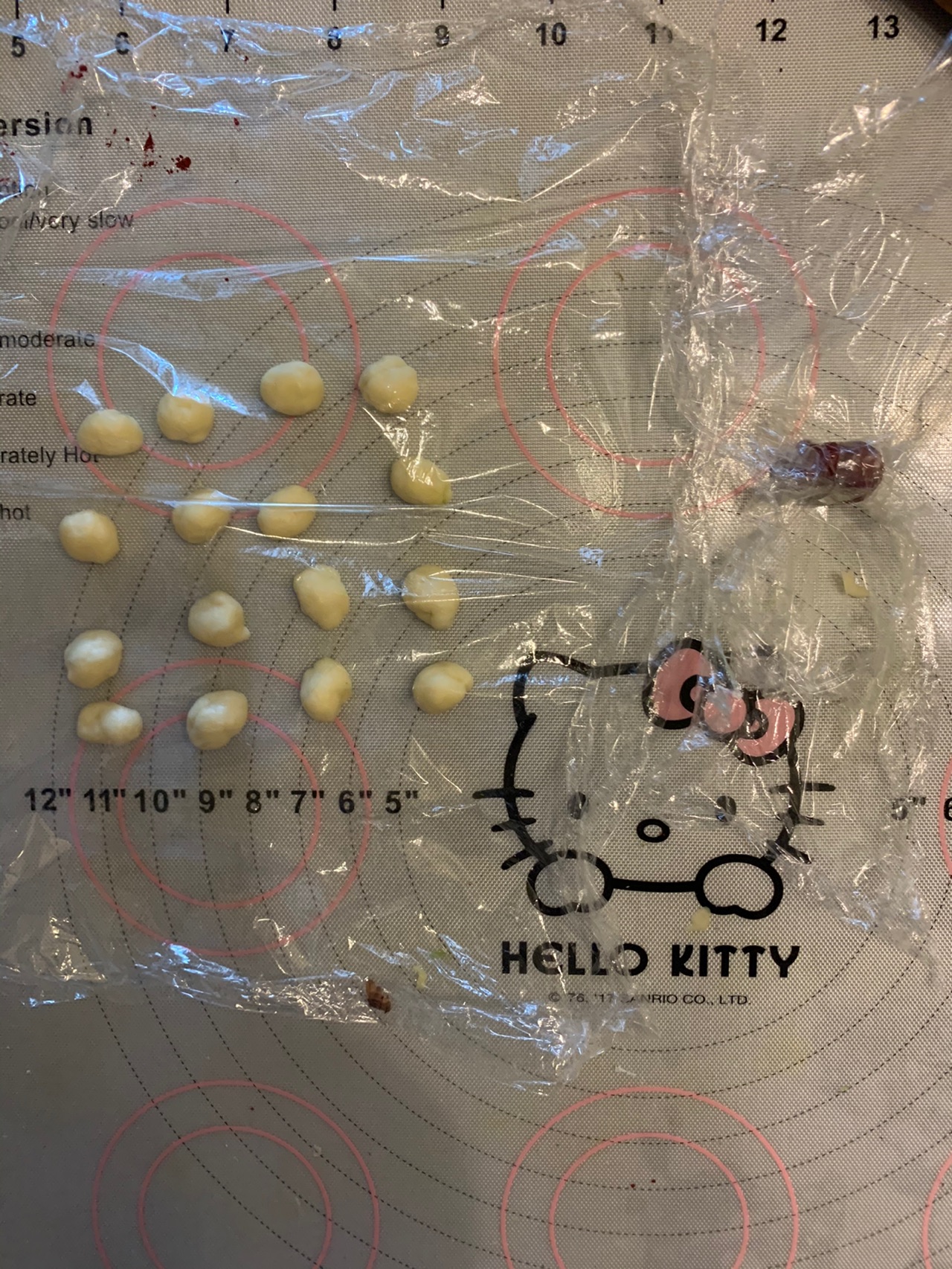步骤5、包入豆沙馅。其实可以不用加馅料,加了更好吃。馅量多少随自己喜好,我也没称重。