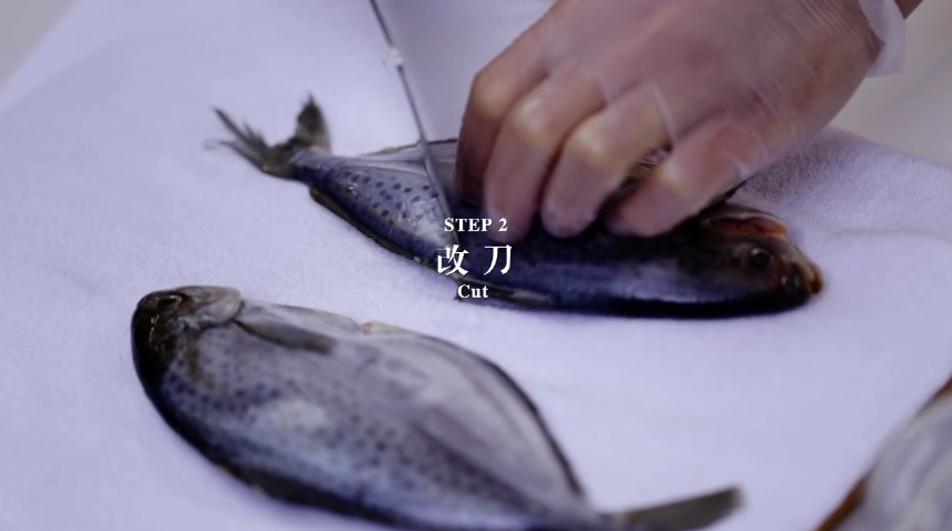 步骤1、将雪花鲳鱼解冻,清理内脏,冲洗干净。