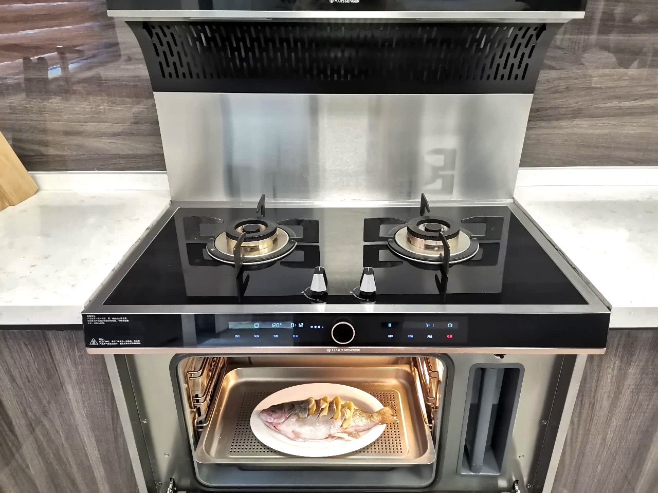 步骤5、下面就可以开始蒸啦!用火星人蒸烤一体集成灶,选择快速蒸模式,设定温度120摄氏度,时间12分钟,一键启动!