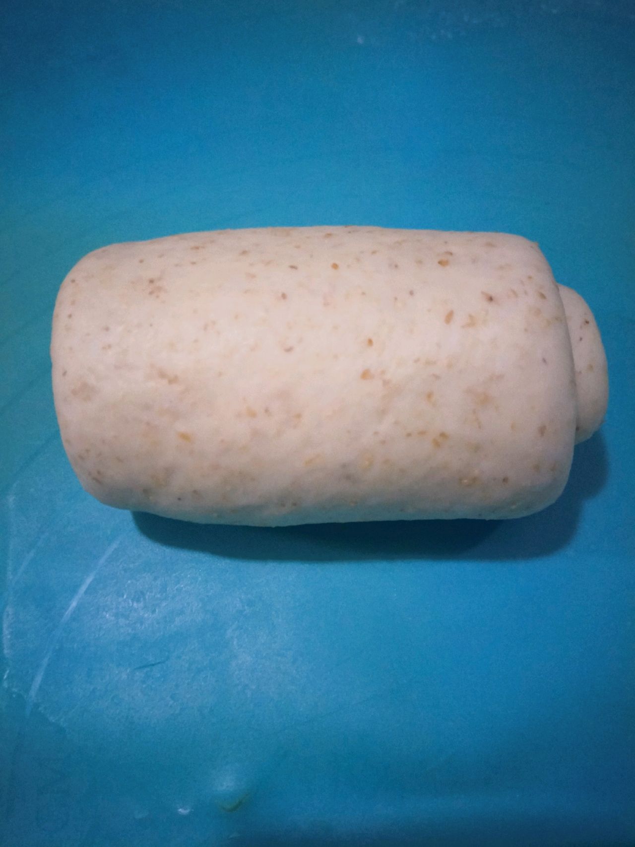 现在人们吃的太精细化了,又开始回归过去追求粗纤维食品,面包粉加了全麦,口感更好吃,吃着也健康美味!