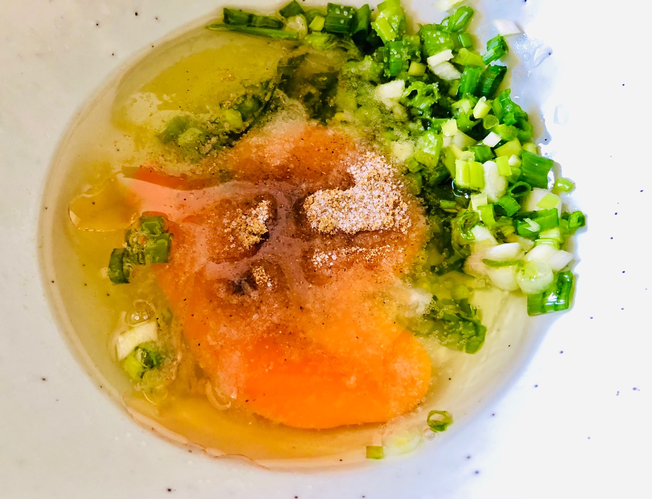辅料:亚麻籽油2勺、小葱2根、菌菇粉少许、黑芝麻少许、盐少许