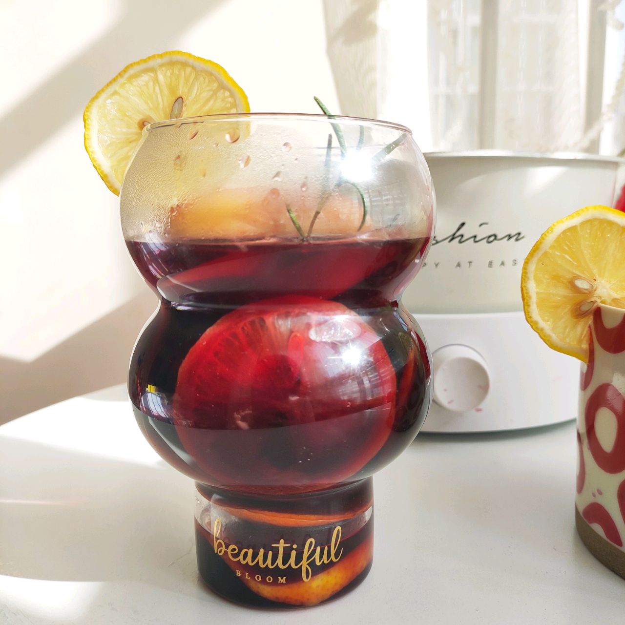 步骤11、切两片柠檬,摘迷迭香装饰下,然后趁热喝哦