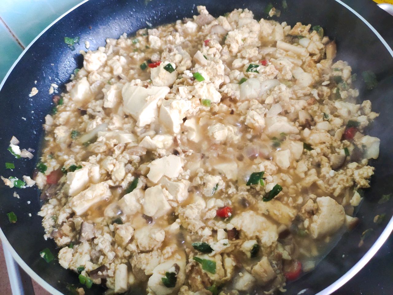 主料:鸡蛋2个、豆腐,鲜香菇1块,1朵