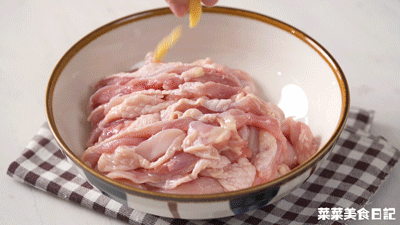 步骤9、鸡肉加入15g姜丝、1小勺米酒、1/2小勺盐、1/4小勺胡椒粉、1小勺玉米淀粉拌匀·若能买到新鲜走地鸡,也可以只加盐就直接入锅蒸,味道更鲜