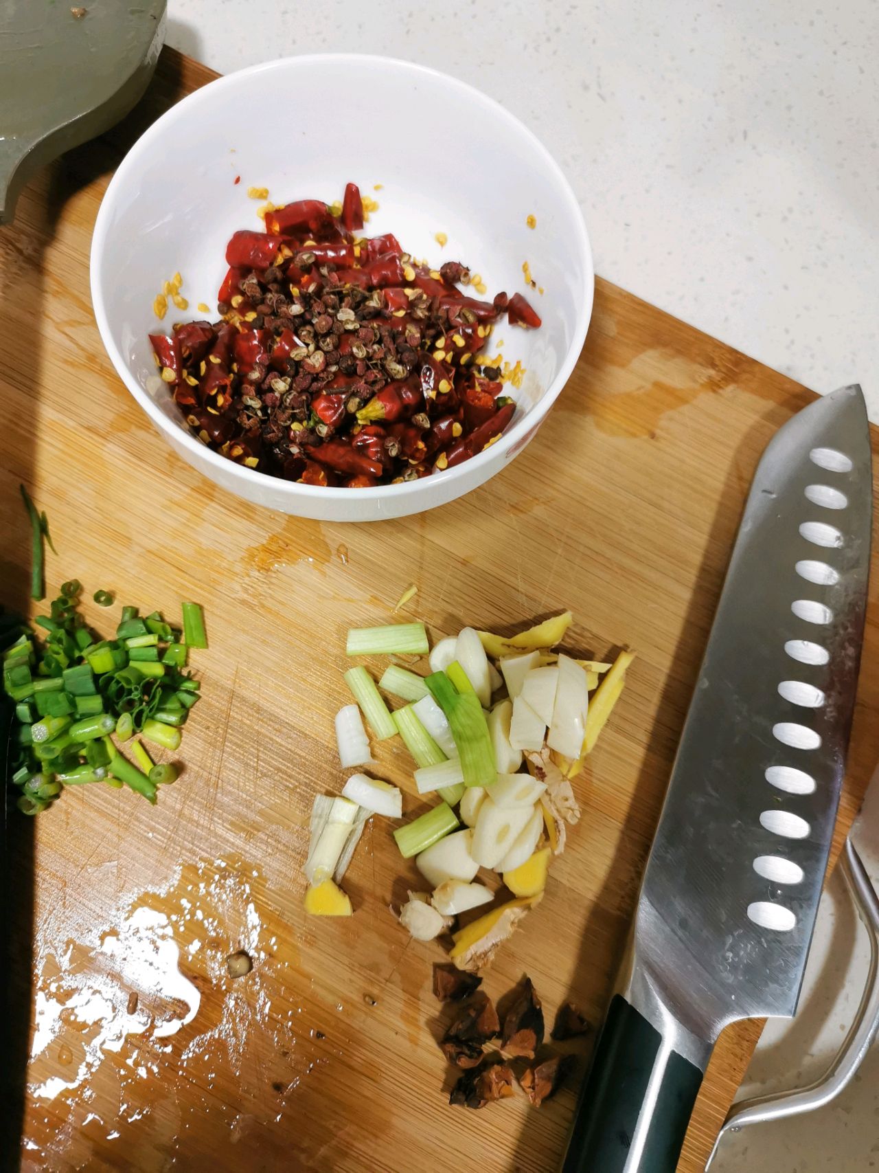 辅料:葱姜蒜少许、花椒一小把、八角1个、油适量、黑胡椒少许、盐少许、生抽一小勺、生粉一小勺、料酒一勺、花椒粉少许、白芝麻少许