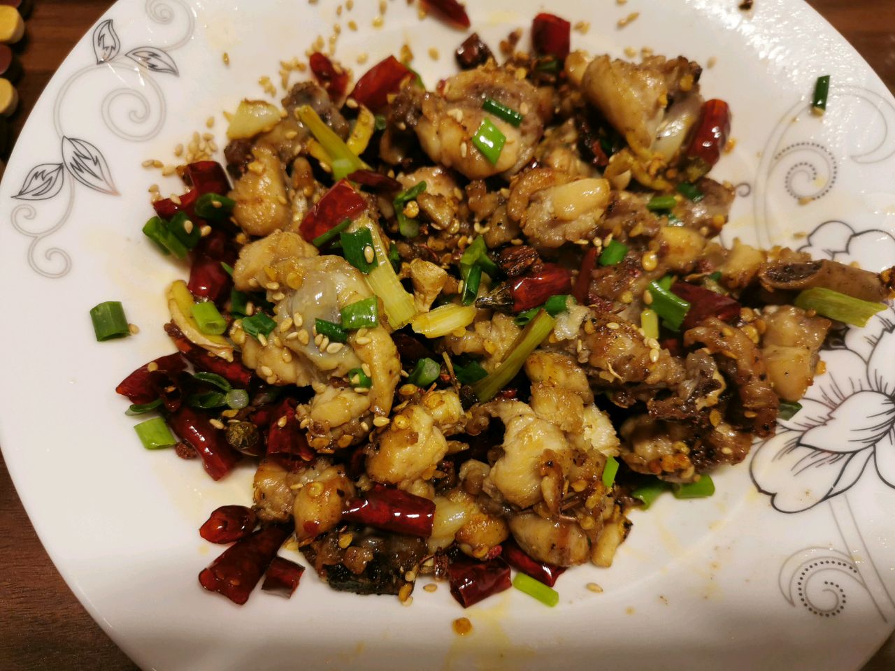 步骤6、然后下鸡块继续翻炒撒盐和白芝麻起锅吃!天哪好辣哦!(我这个干辣椒好辣)