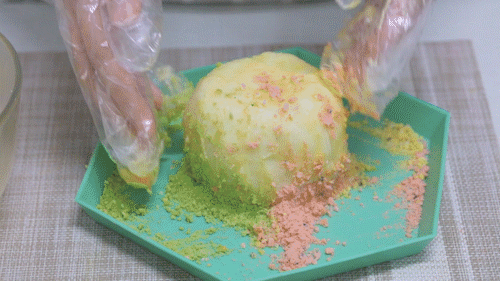 步骤12、再放入脆片中,裹上脆片碎,没有的话,可以用面包糠代替哦!