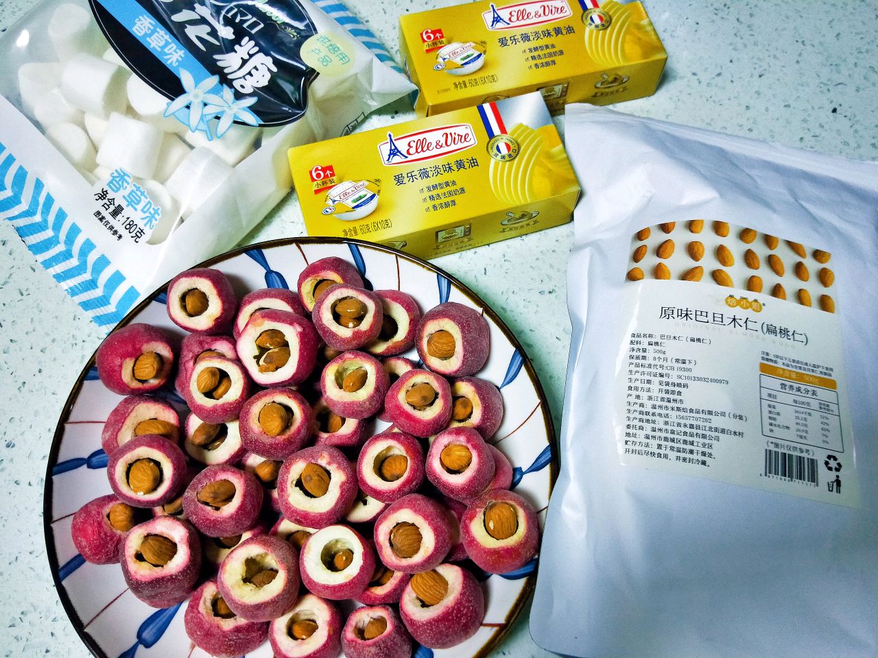 步骤2、把巴旦木塞入山楂球去核部位,孔大一点的可以悄悄的多塞一个巴旦木