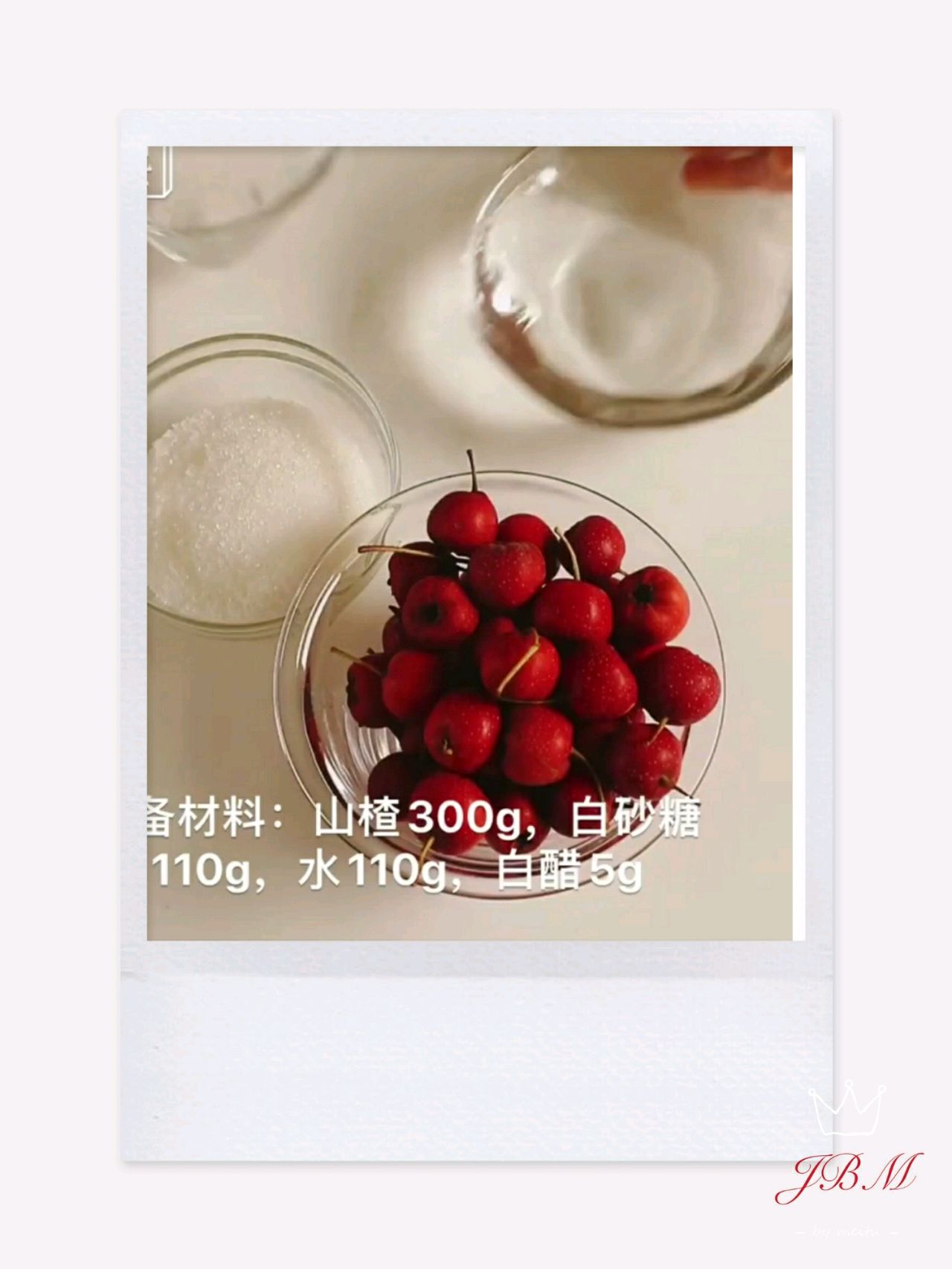 步骤1、准备材料,山楂洗净去除尾巴擦干或控干水分,白糖,水,白醋称好。