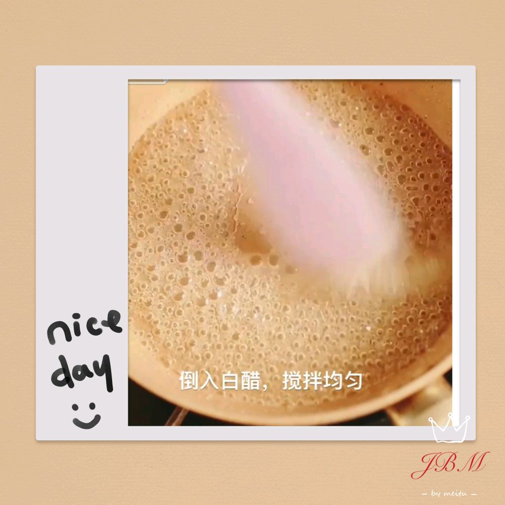 步骤3、倒入白醋搅拌均匀了,关火,