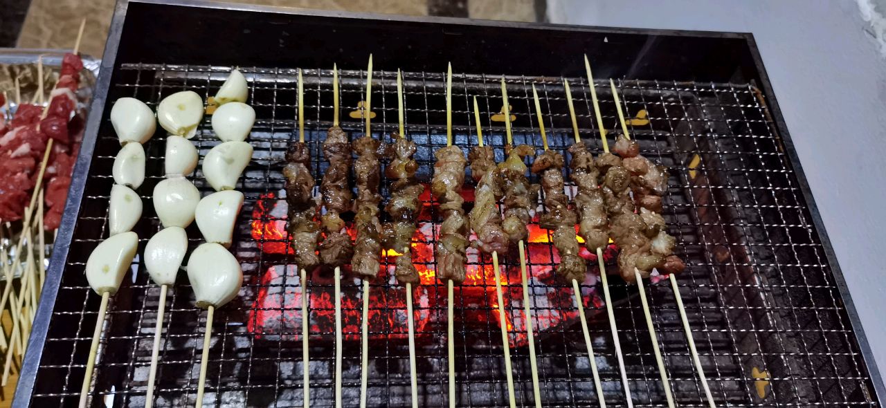 辅料:辣椒粉适量、食用油适量、铁签子数根、鸡翅,大虾,骨肉相连适量