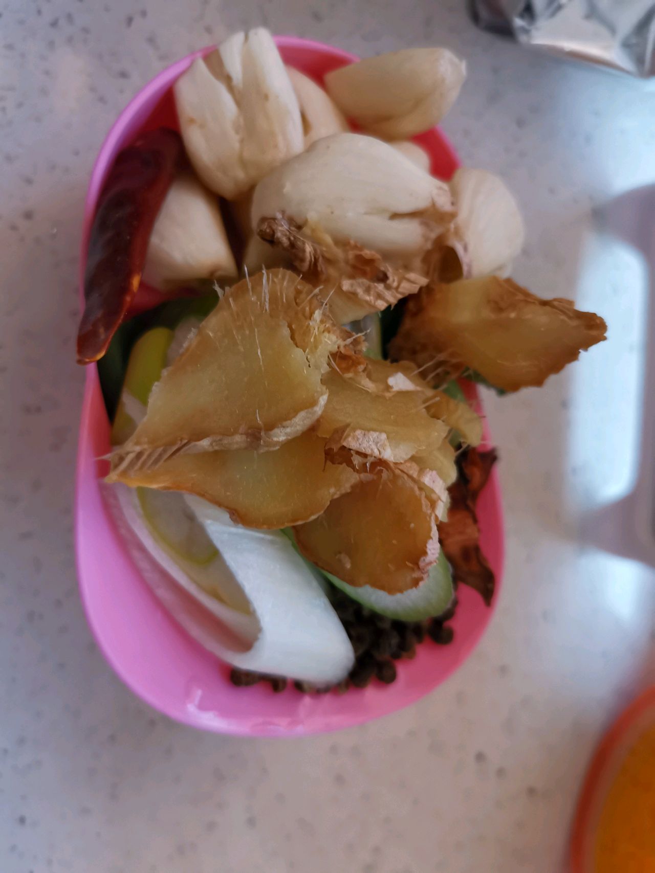 步骤1、我习惯把这些干料准备好放一起,方便一起下锅