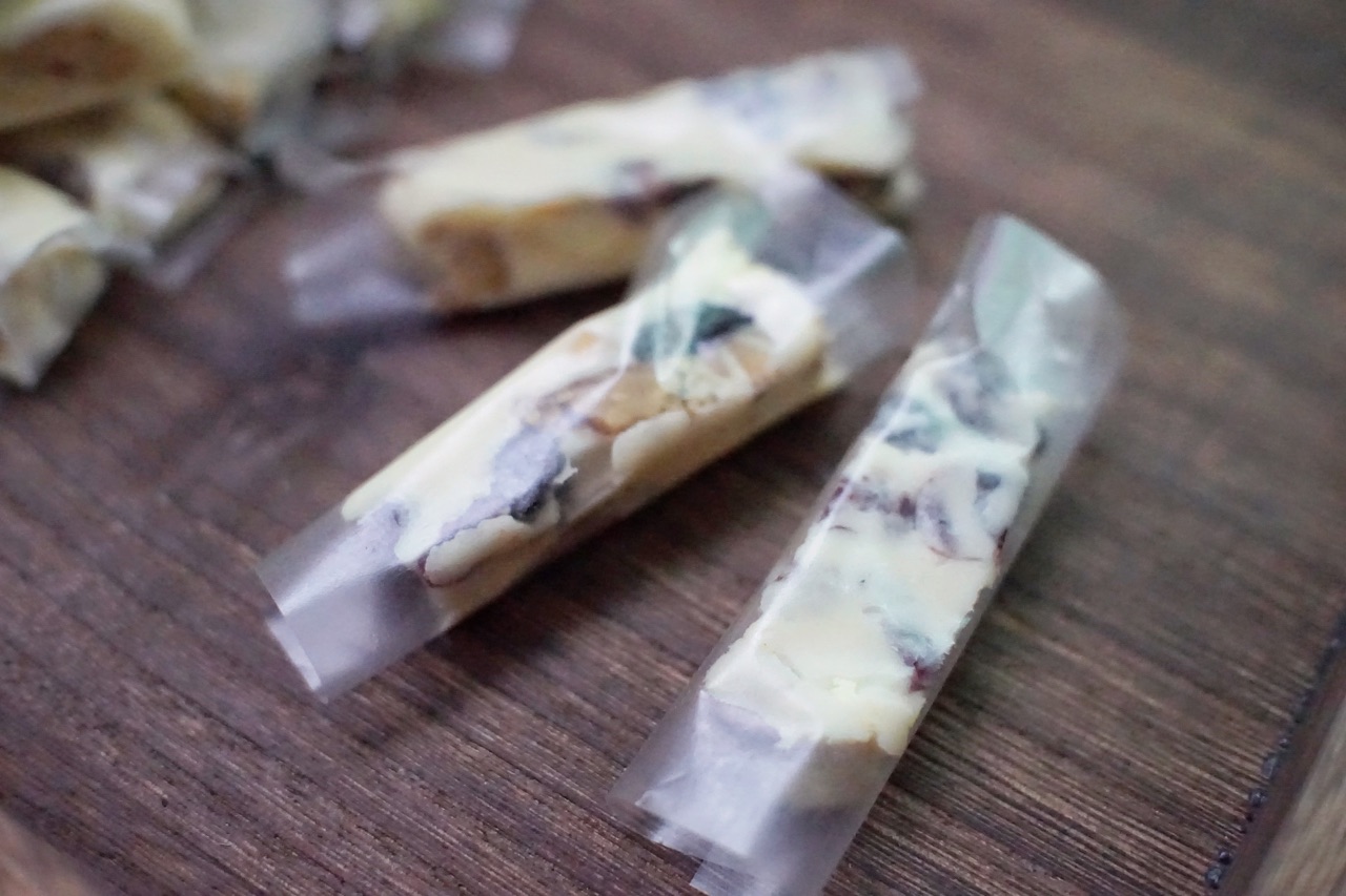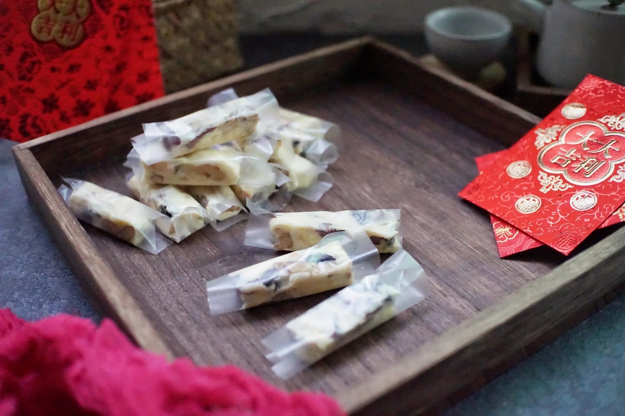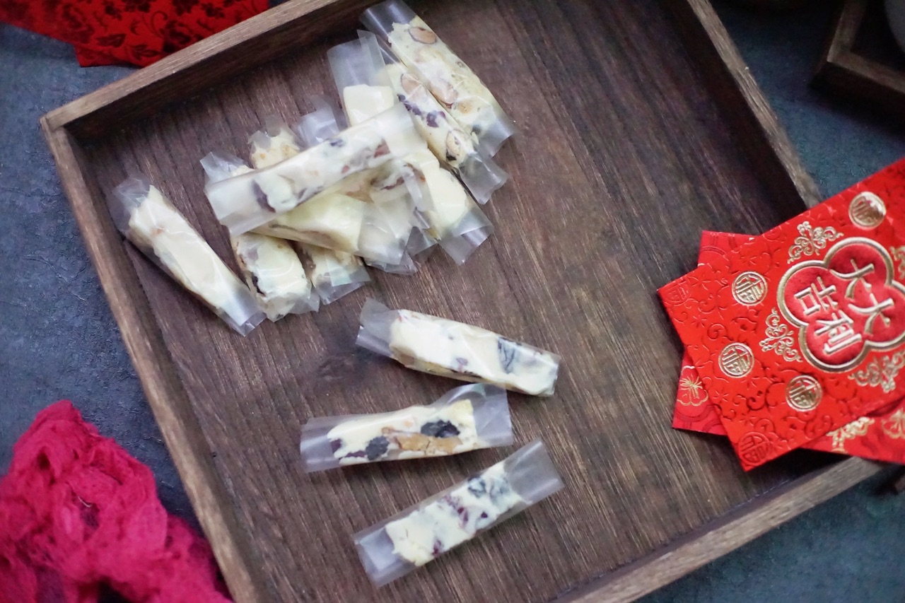 步骤8、给每颗牛轧糖包入糯米纸,最后放入包装糖纸袋中即可