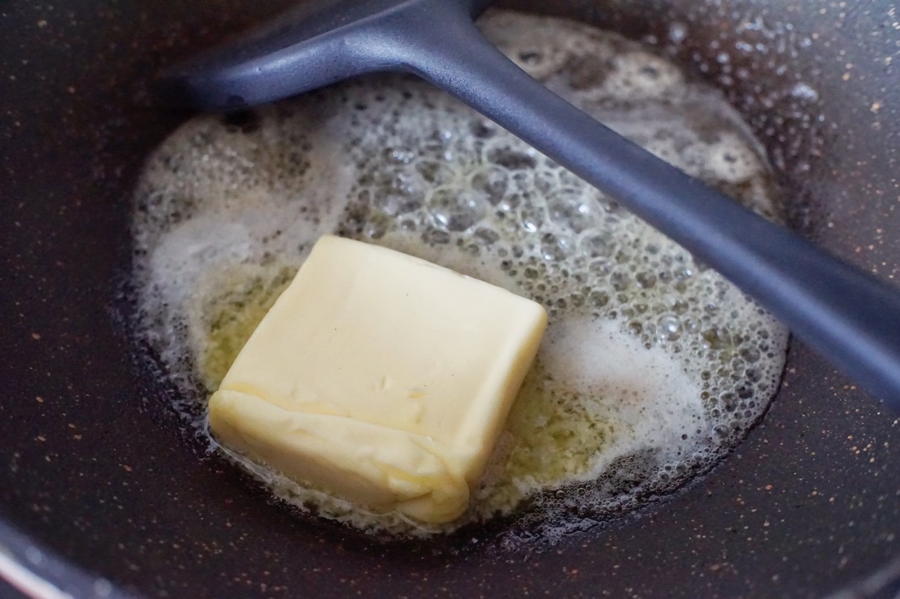 步骤3、待黄油融化后倒入棉花糖入锅里使其融化,期间要稍作翻拌