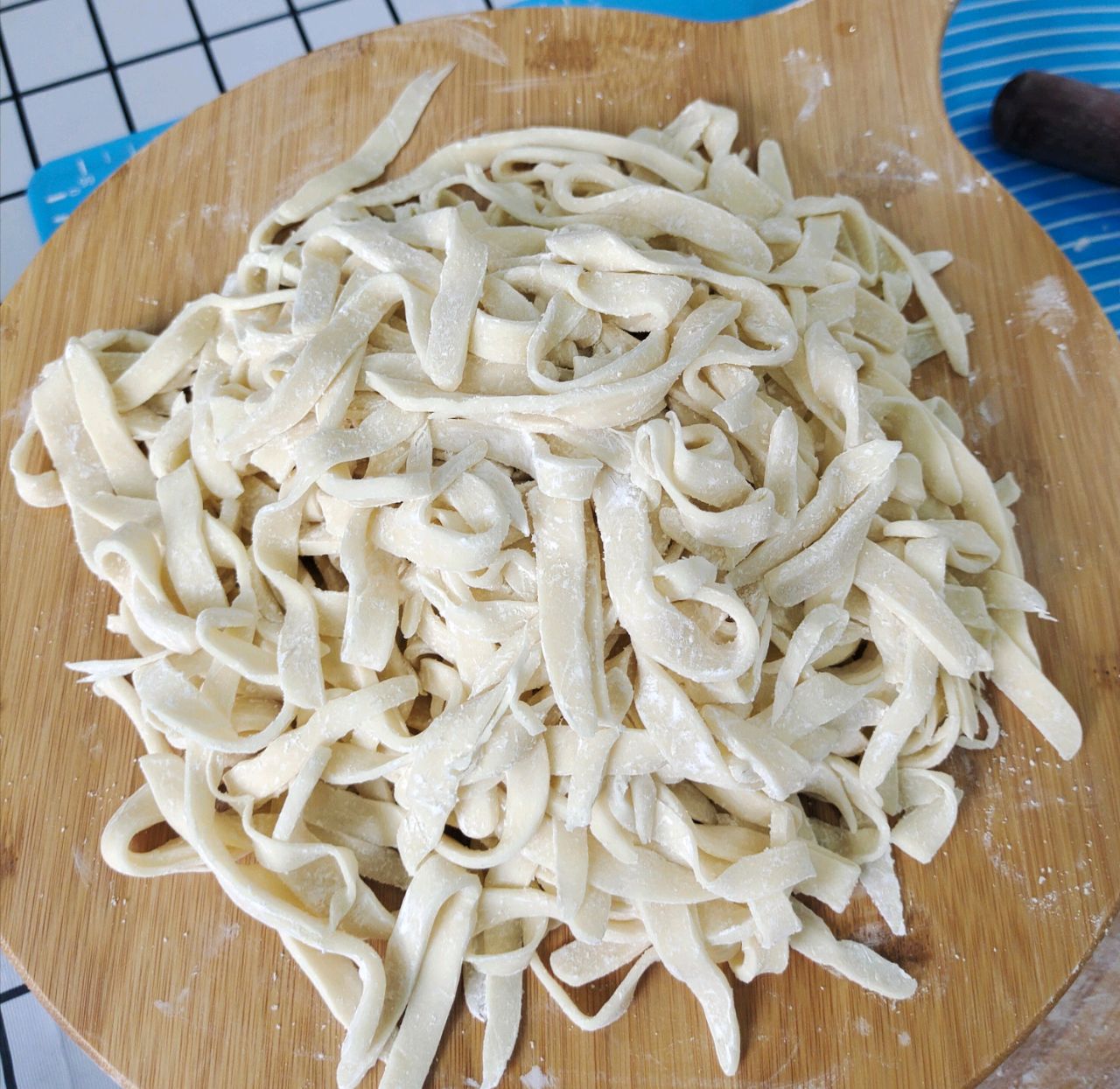 步骤4、开水锅中下入面片煮熟,捞出,放入调好的汤中