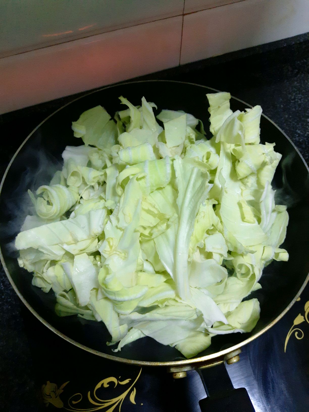 步骤3、加入包菜和姜片