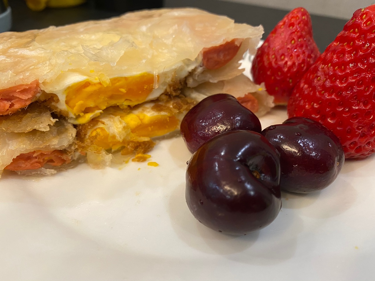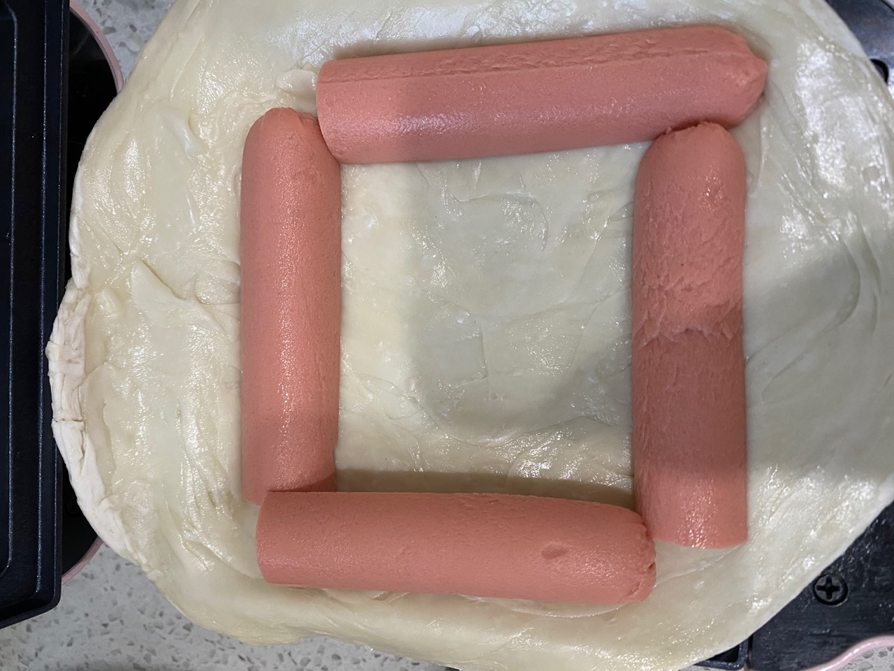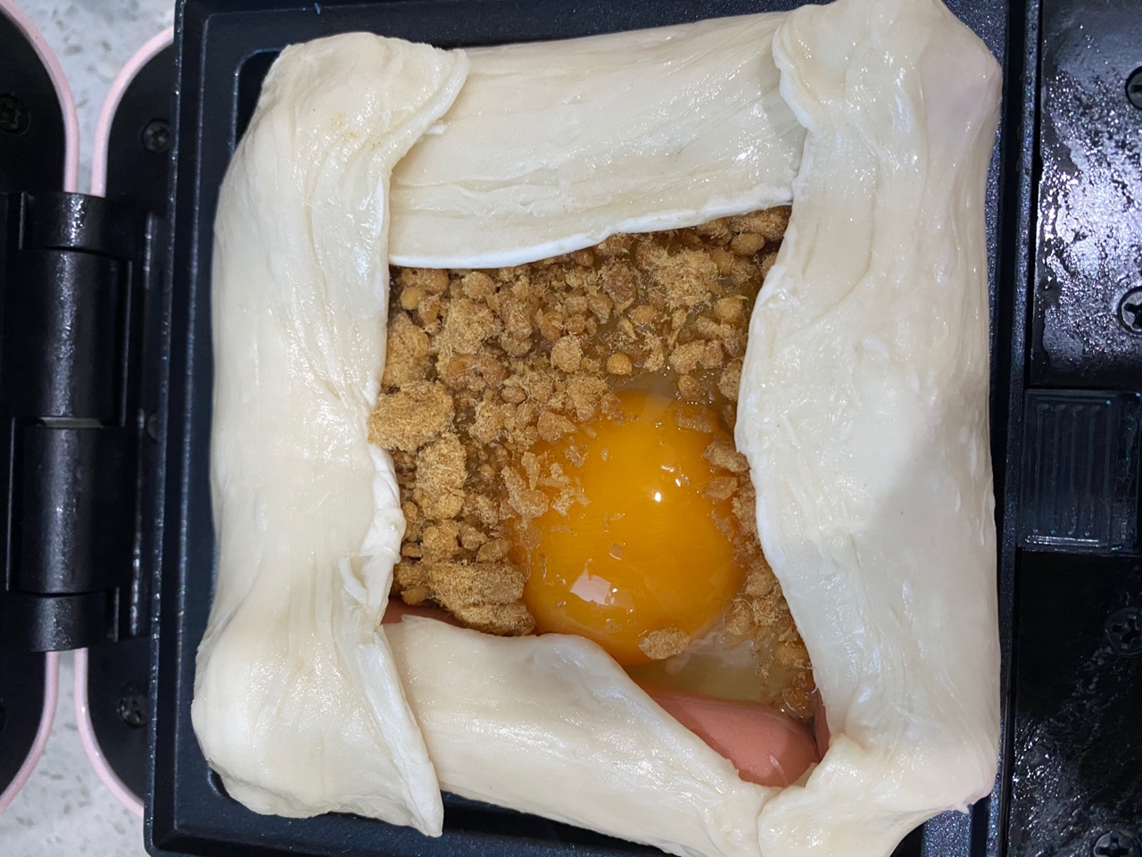 步骤2、手抓饼,鸡蛋,火腿肠,肉松