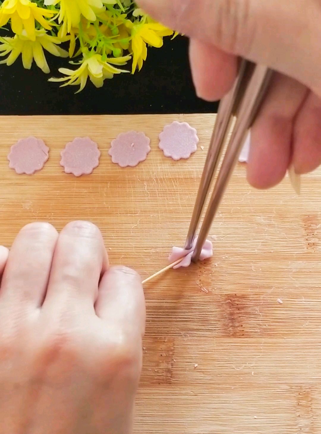 步骤7、牙签儿按住中心,用筷子中间一夹,一个完成,操作简单(﹡ˆoˆ﹡)