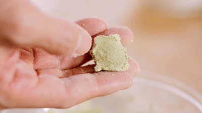 步骤5、搅拌至用手能捏成团,一捏就散的状态。
