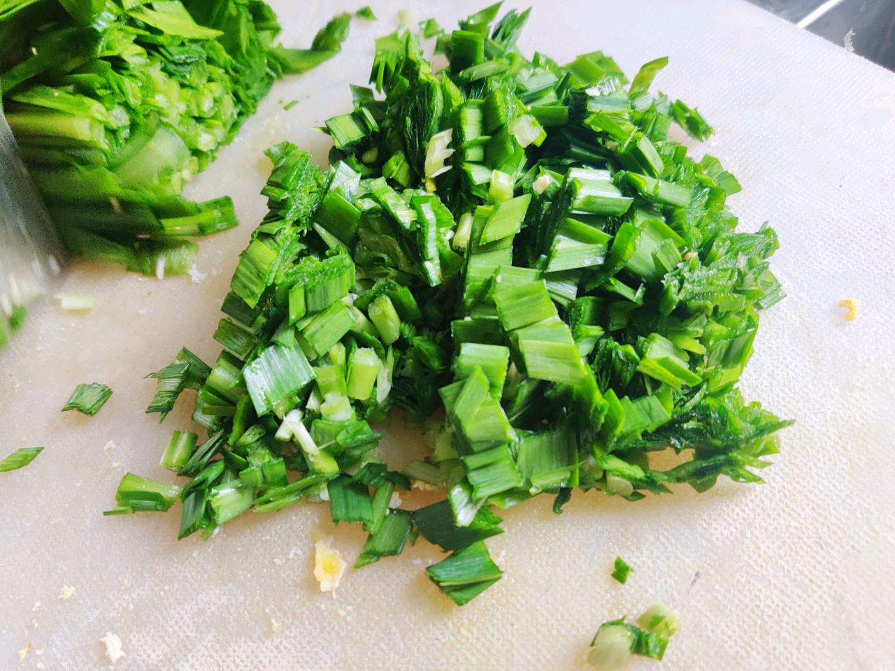 步骤4、熟油,姜,葱,盐,十三香拌馅儿