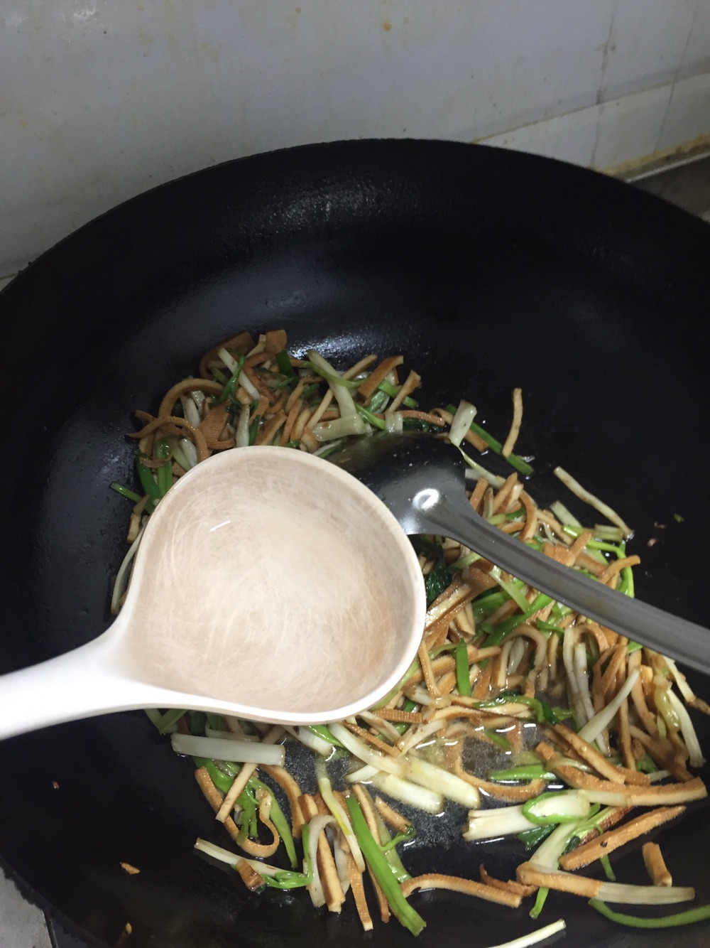 步骤7、放入香干,炒一会