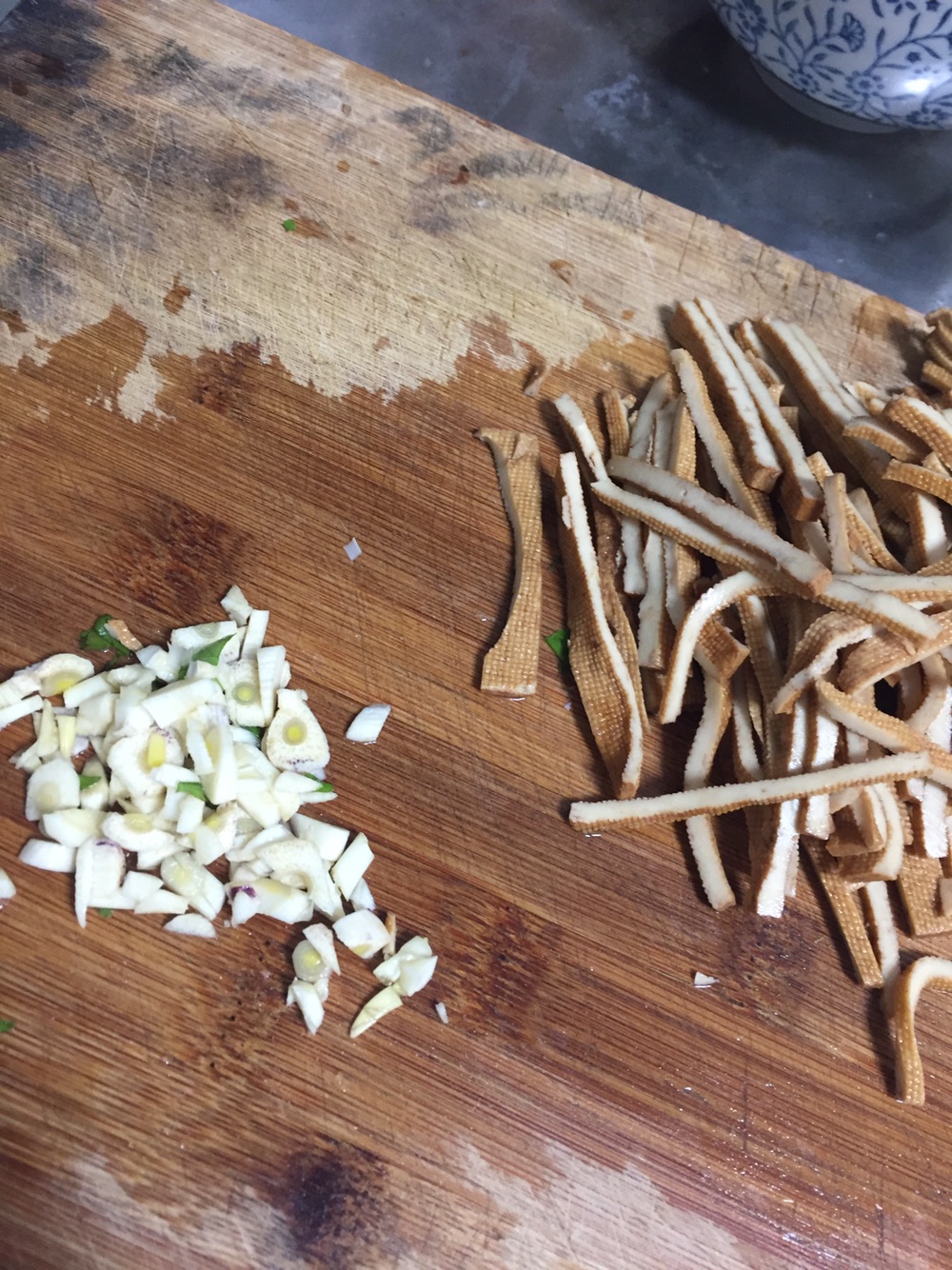 步骤2、香干洗净,蒜头洗净