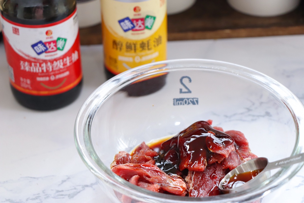 步骤2、加入一勺耗油,一勺料酒,一勺生抽