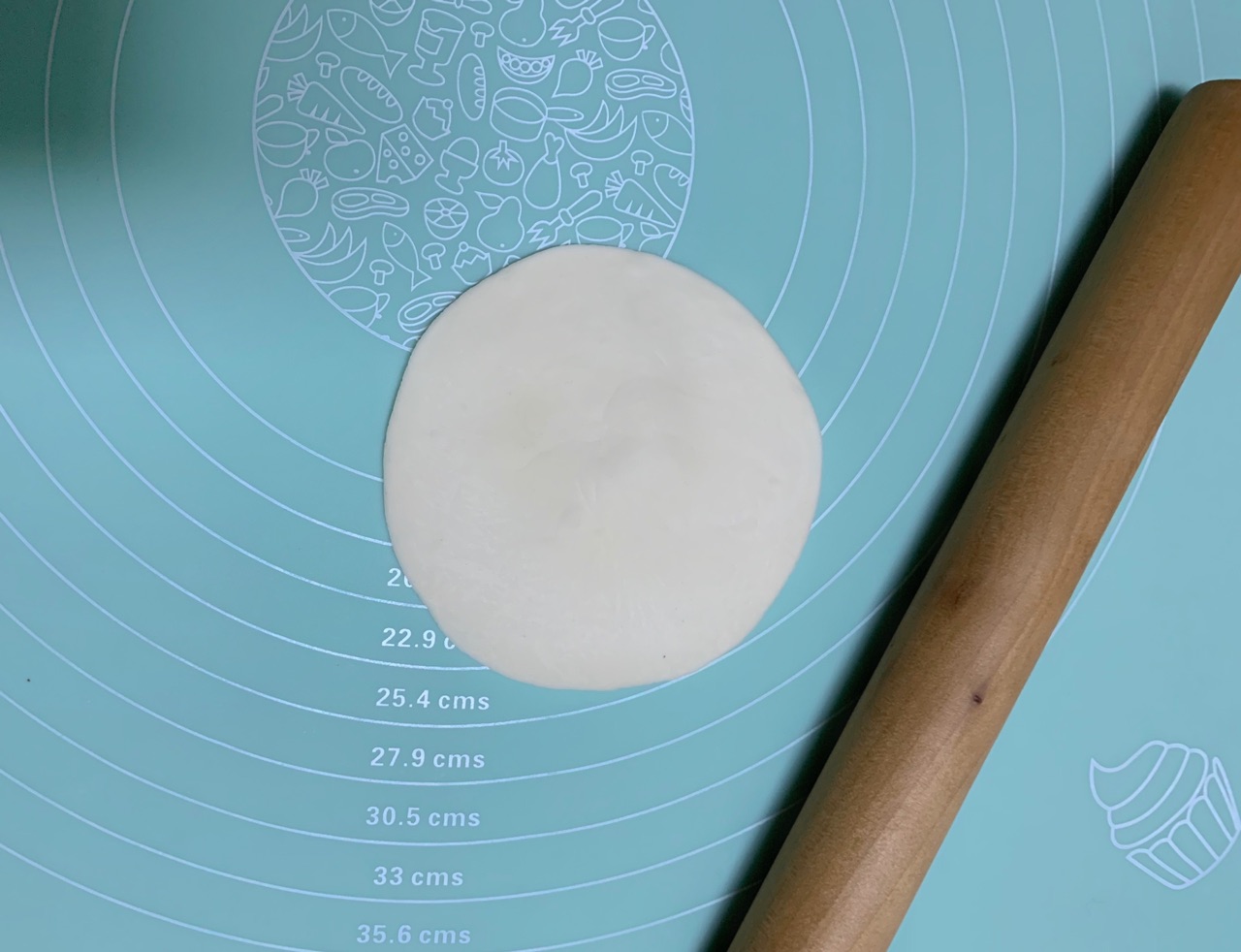 步骤13、用擀面杖擀成中间厚周围薄的包子皮