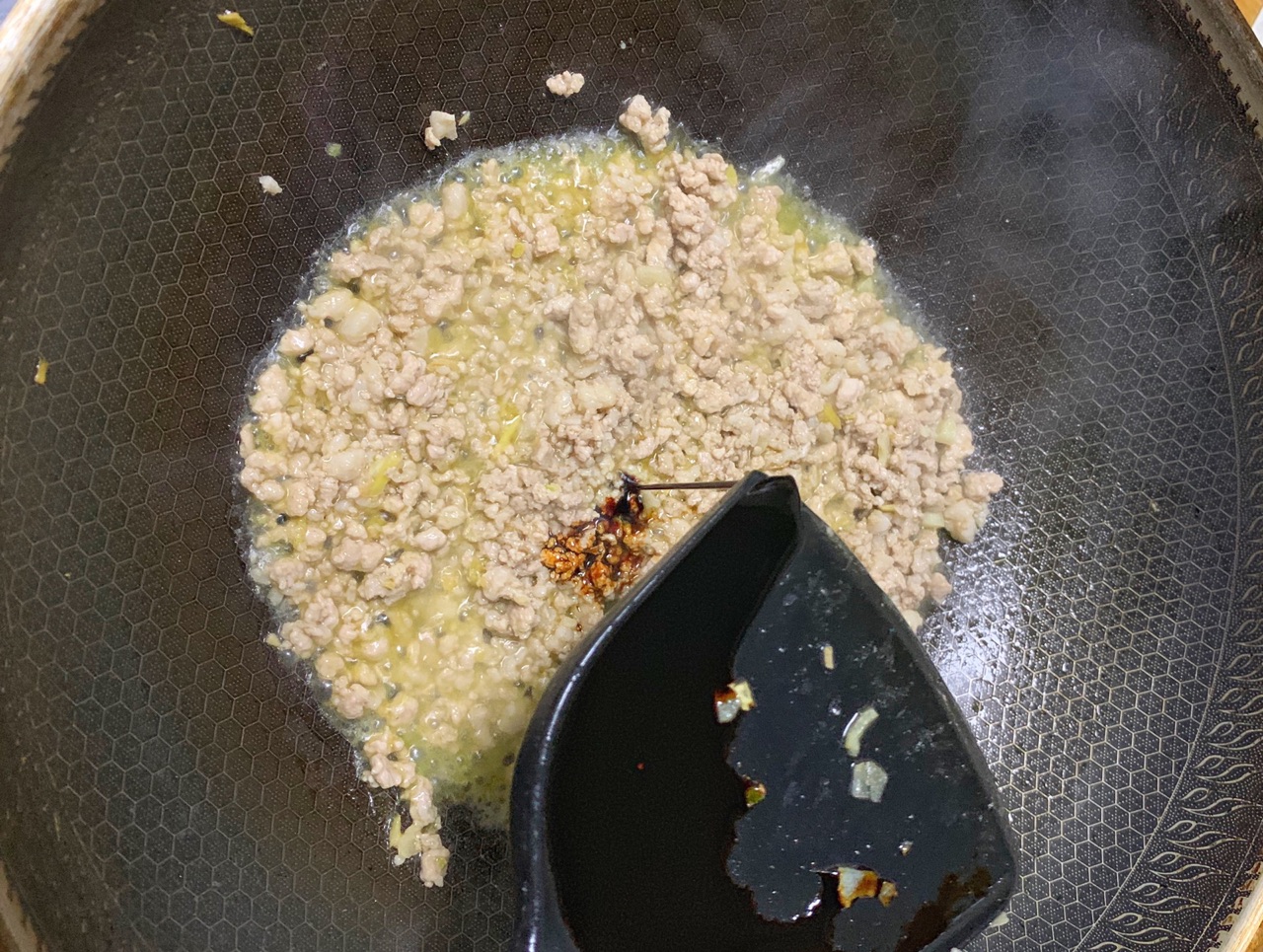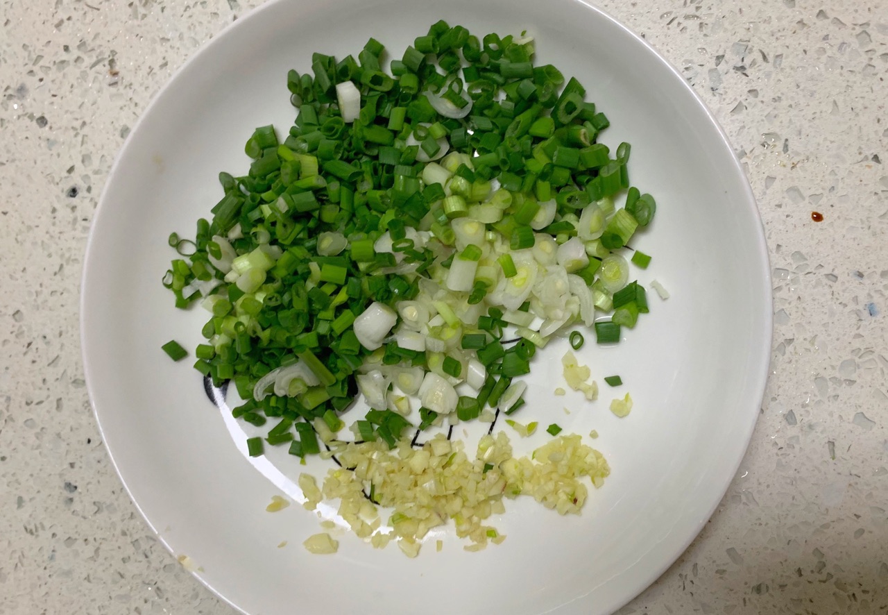 辅料:温水150克、青菜一小颗、瘦肉100克、盐2克、六月鲜红烧酱油2勺、味达美臻品料酒1勺、味达美臻品蚝油2勺、小葱5根、蒜末适量、胡椒粉半勺、生姜粉半勺、芝麻油20克