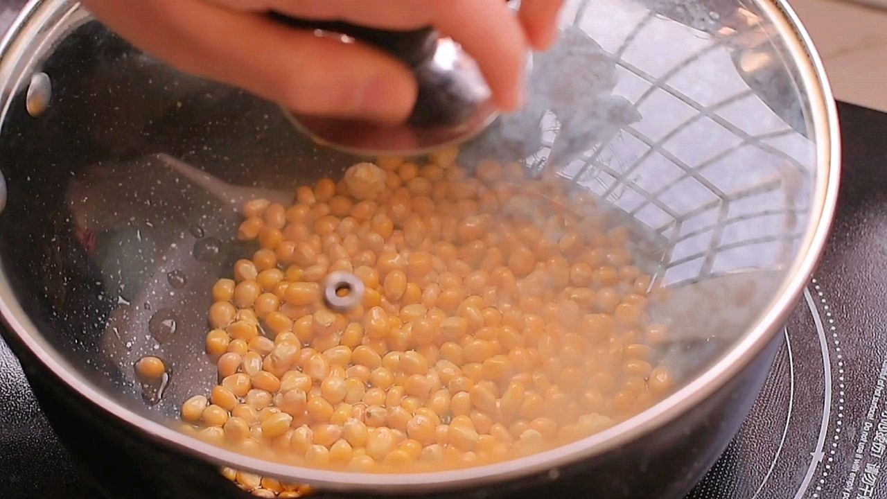 步骤3、炒一炒,炸开几个后,盖上锅盖,小火,时不时摇晃一下,避免受热不均匀,烧焦。