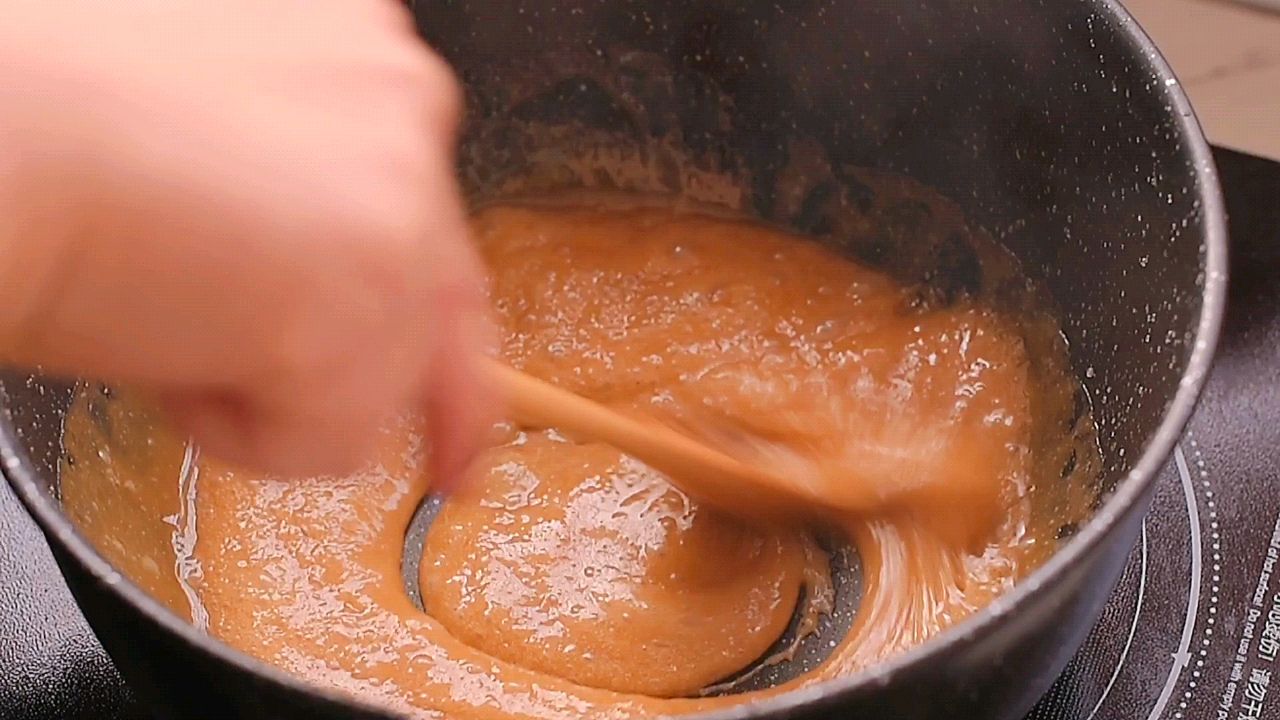 步骤7、可以明显看到糖变成了好看的焦糖色。