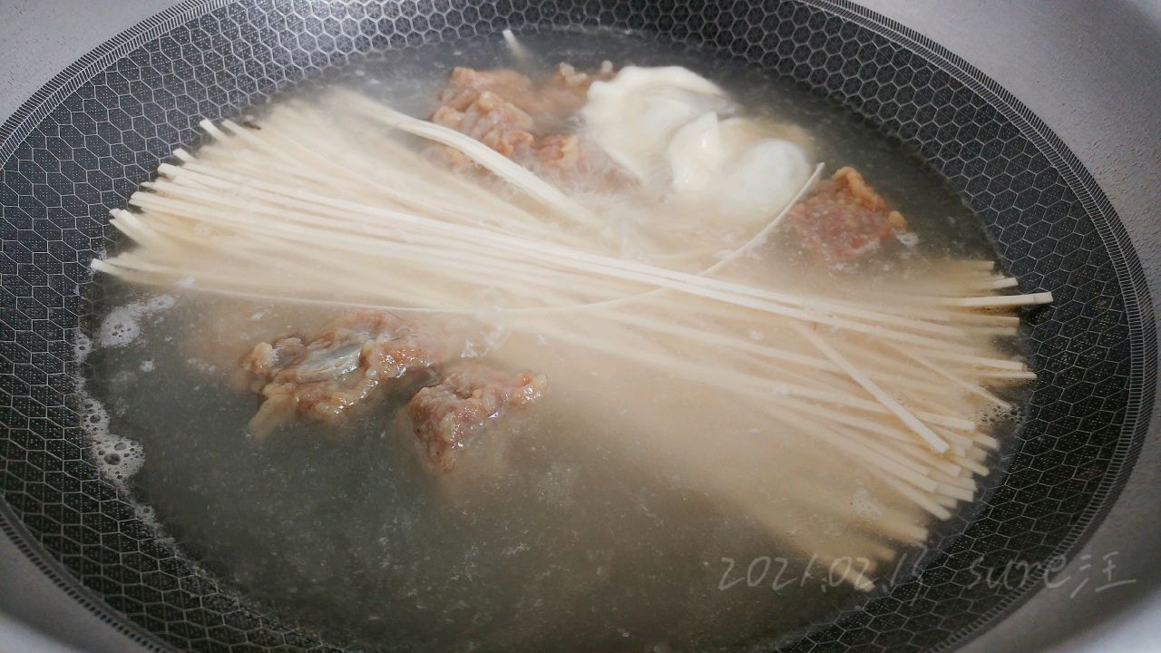 步骤8、中大火煮上四五分钟,开盖扔上把面条,龙须窄面都可以挂面鲜面看时间