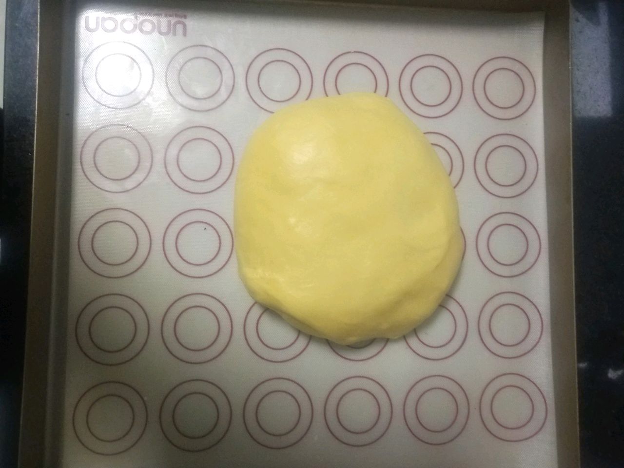 步骤12、从上直下卷起,不要卷。三块面团一次这样卷起来。盖保鲜袋松弛15——20分钟