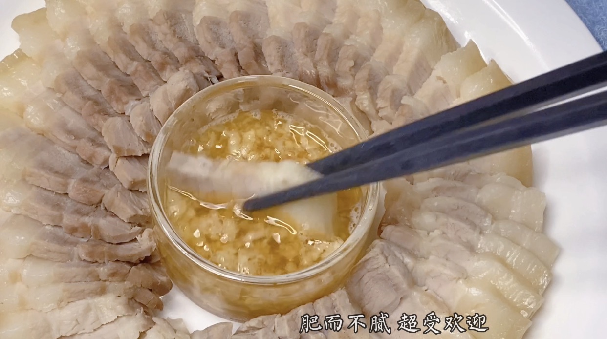每年的年菜里这道菜是必不可少的,简单的水煮一下,切上一切就是一盘高颜值超受欢迎的一道菜~肥而不腻的白切肉,沾上蒜泥汁,真的是口口难忘!