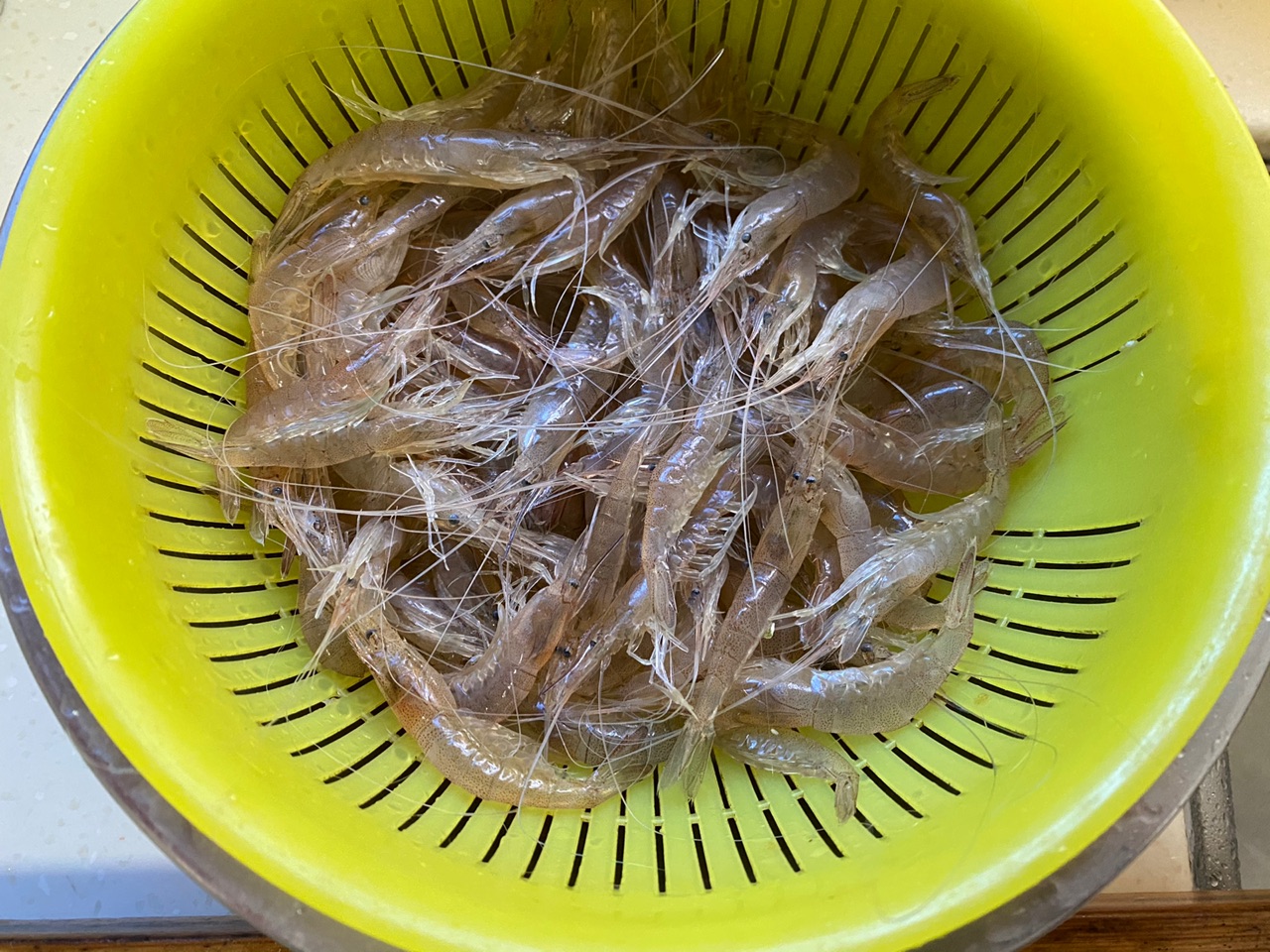 步骤1、釆用的是白虾晶莹剔透,清洗沥干水份