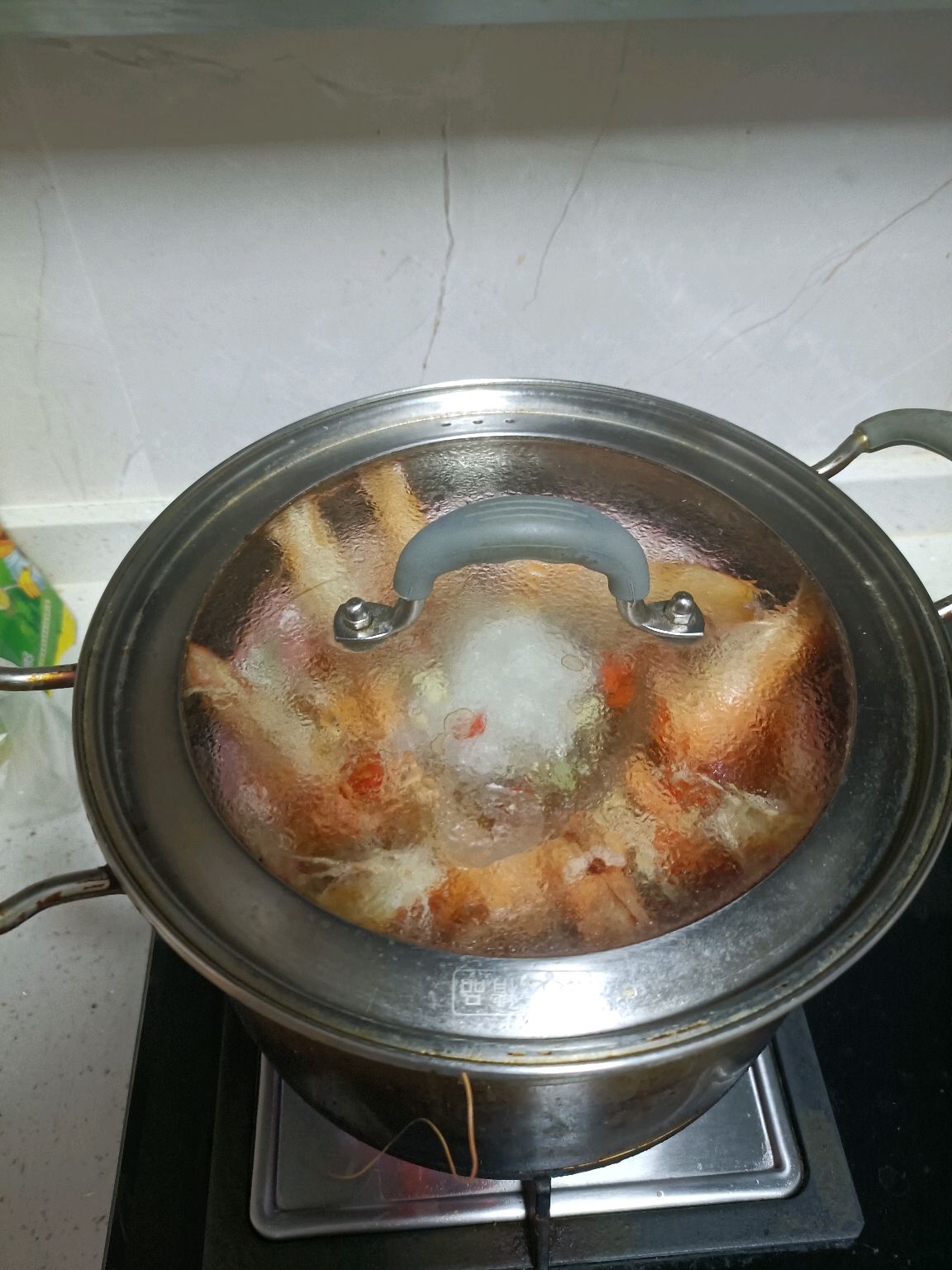 步骤7、冷锅热油。炒姜蒜。变香,加入海鲜酱油和少许料酒