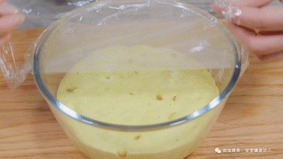 步骤7、面糊盖上保鲜膜,放在温暖的地方,发酵至原来的2倍大。*现在天气还是比较凉的,我建议你们可以借助厨具发酵:&烤箱发酵:面糊盖上保鲜膜放进烤箱,选择发酵模式(下管40度)启动烤箱,大约需要1个小时左右。&蒸锅发酵:锅中加入半锅40度左右的热水(手摸上去有温热感,不烫手),面糊盖保鲜膜放在笼屉上,盖上锅盖发酵1小时。