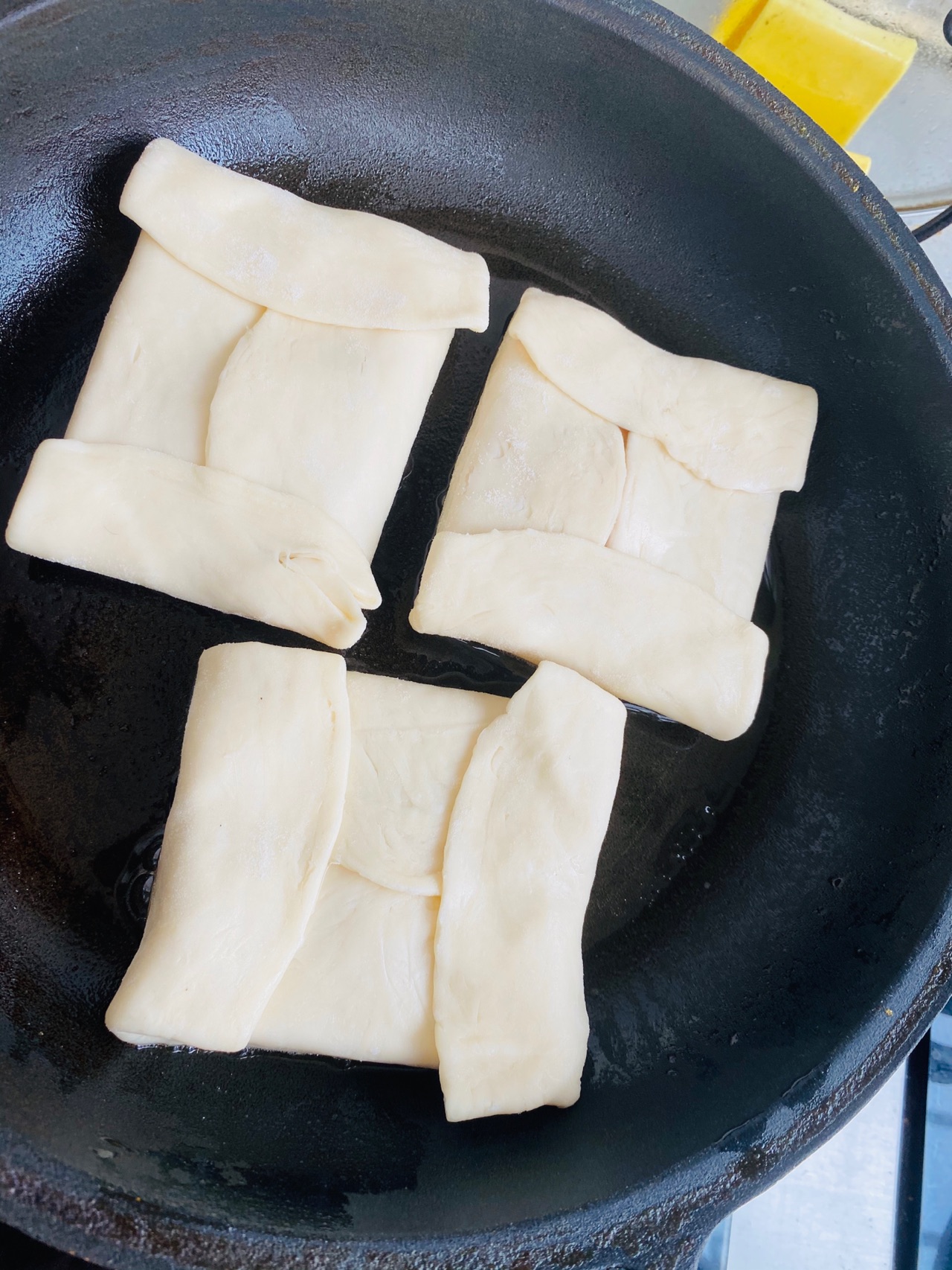 步骤3、油两小勺小火慢煎,翻面再加一到两小勺油再煎