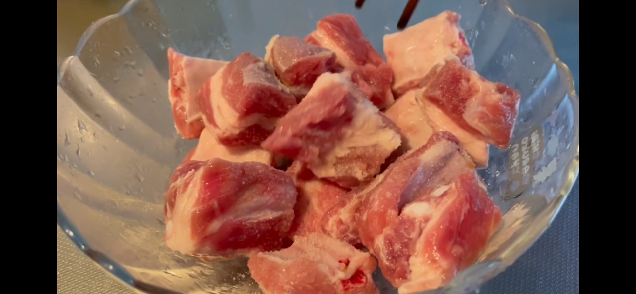 步骤1、猪肋排洗净,加盐、淀粉、生姜片腌制2小时
