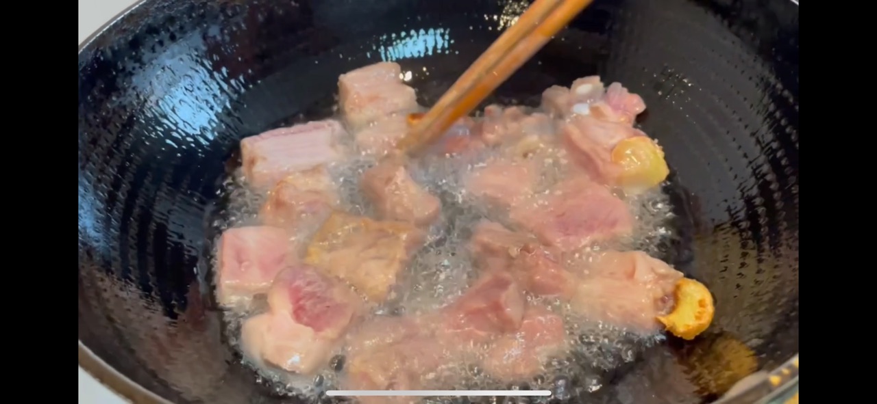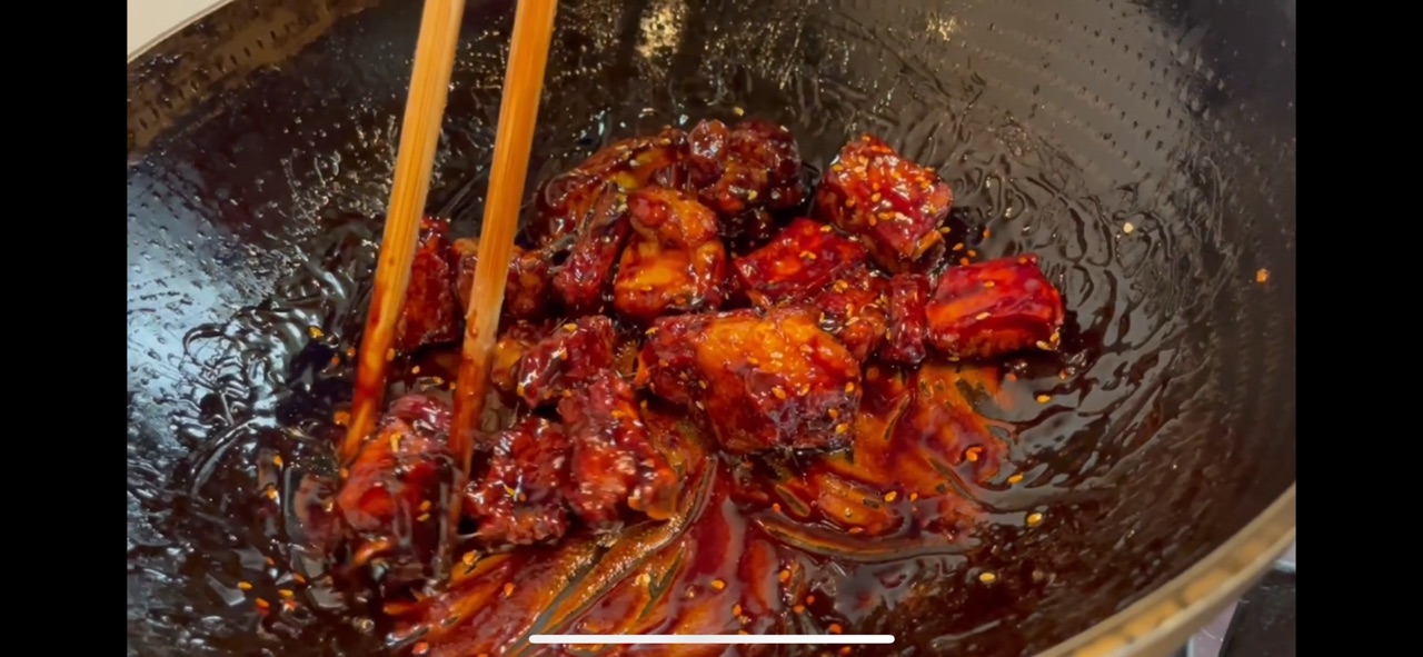 辅料:生姜(腌制用)3片、盐(腌制用)8克、色拉油300克、老抽1勺、生抽2勺、醋1勺、白砂糖80克、淀粉一勺、白芝麻(点缀)5克