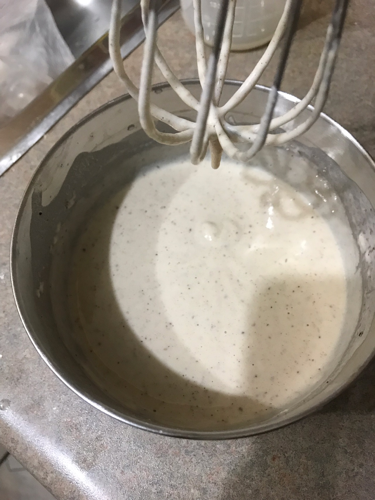步骤2、准备粉浆,别太稀了,到了提起蛋抽缓慢滴下就行了。